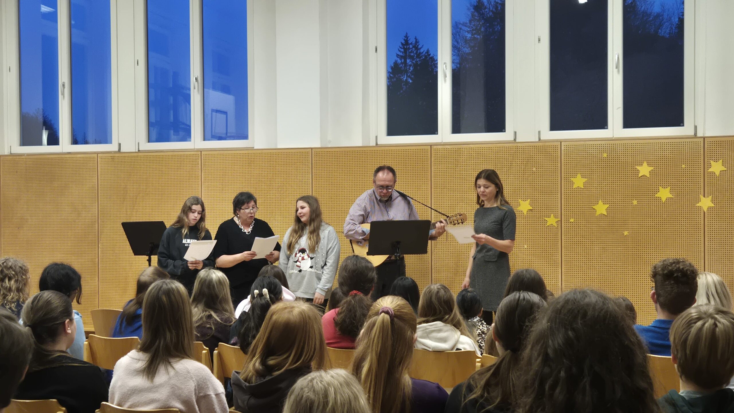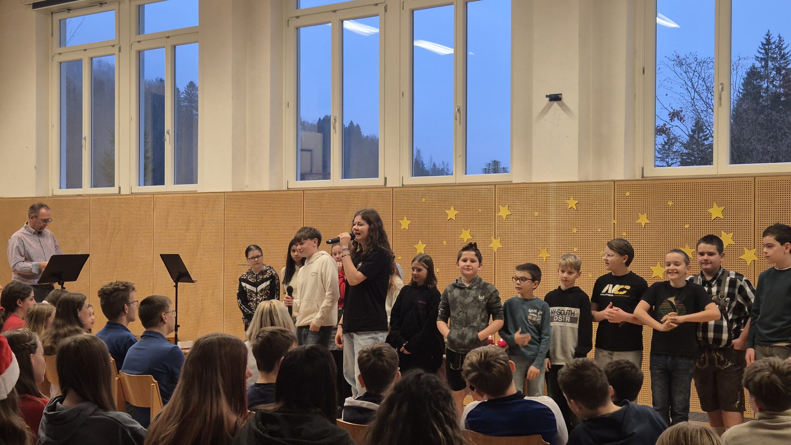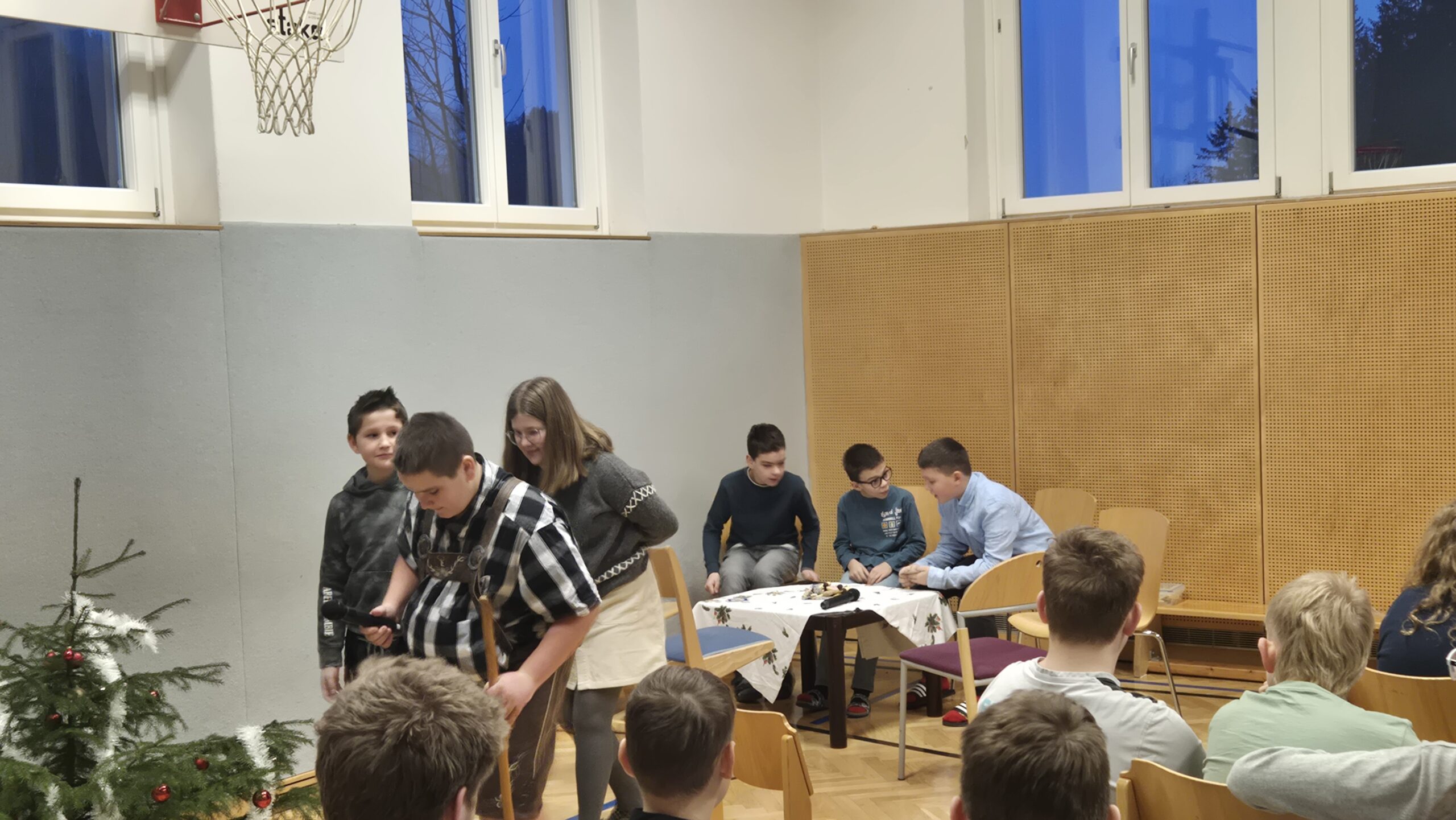 Die Schüler:innen gestalteten den Ablauf mit wunderbaren Beiträgen: stimmungsvolle Lieder, ein selbst komponierter Weihnachtssong, schöne Botschaften und eine tolle Theateraufführung unserer 1. Klasse waren eine gelungene Mischung aus Kreativität, Freude und Besinnlichkeit.