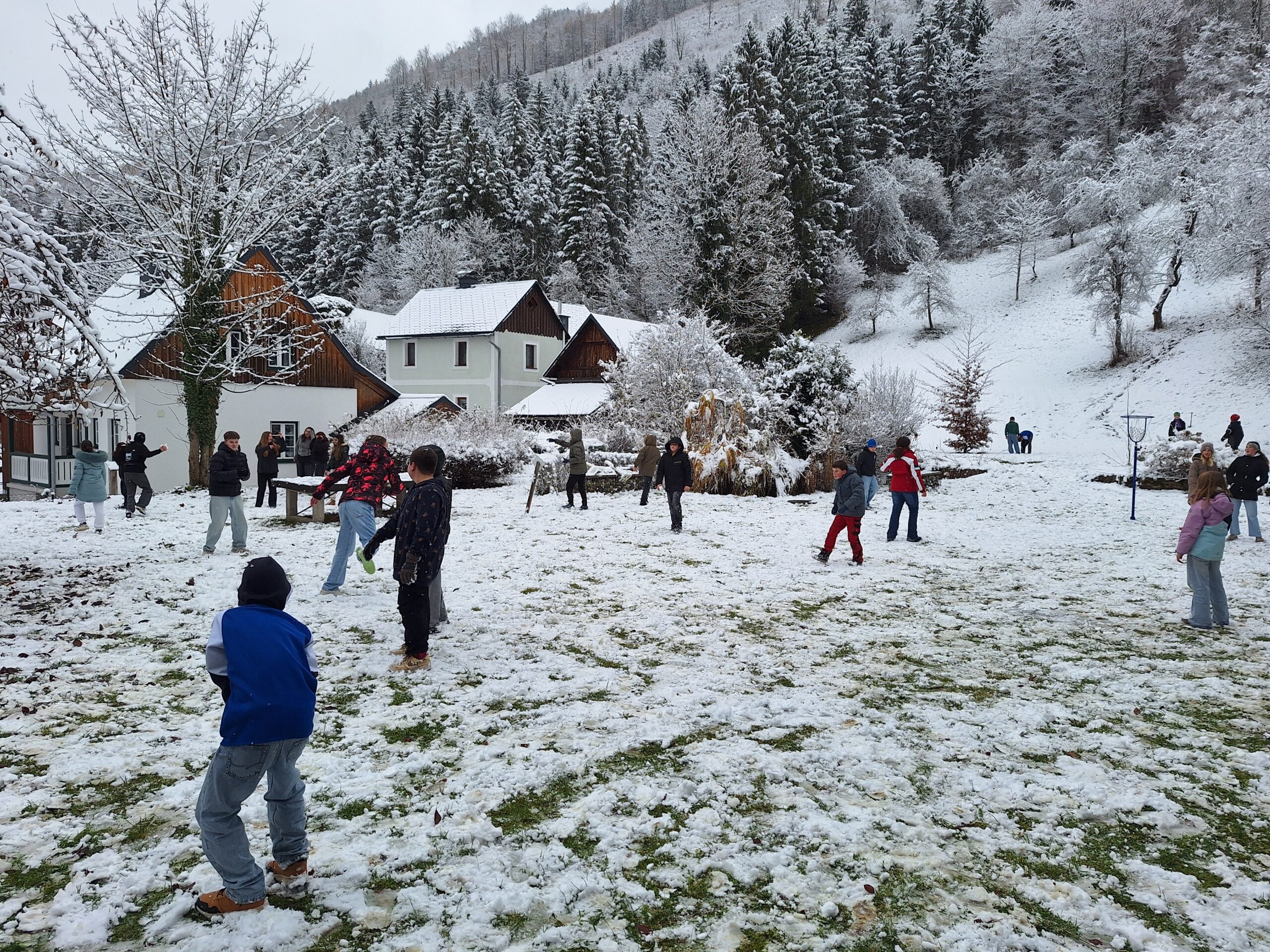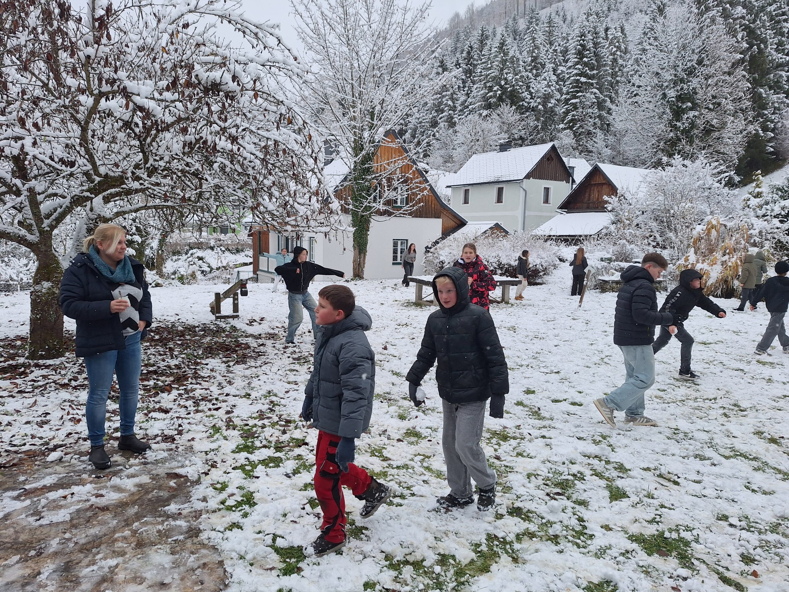 Heute durften unsere Schüler:innen die große Pause ganz besonders genießen: der erste Schnee des Jahres ist gefallen! Mit strahlenden Gesichtern ging es hinaus in den Hof, wo Schneeflocken gefangen, Schneebälle geworfen und die frische Winterluft genossen wurden.